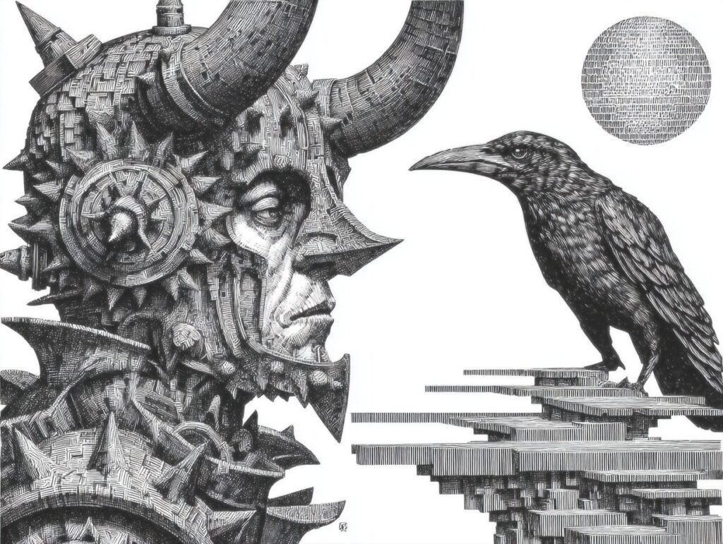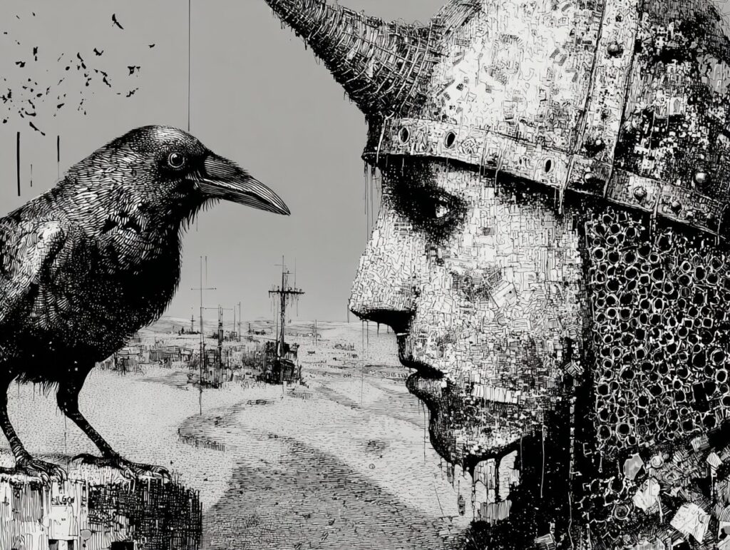 Al reiniciarse el mundo, invariablemente, un cuervo aparece a unos pasos frente a mí. Como todas las veces, el cuervo voltea a verme, deposita una piedra brillante a mis pies y luego alza vuelo y se va. Grazna una, dos, tres veces. El bucle es breve, pero es suficiente para que nos miremos a los ojos. Comprendo que el animal y yo sabemos lo mismo sobre el espíritu atrapado, sobre el mundo negro, las ganas de trascender a una no-existencia. Caigo en la tentación, como todas las mañanas, y quiero detener al cuervo y pedirle que me cuente sobre el mundo, pero él también es incapaz de traicionar su código, y no queda otra: lo miro alzar el vuelo, se va lejos, cada vez más lejos, y yo tengo estas inmensas ganas de llorar, y de pedirle que no se vaya para que me cuente sobre lo que está más allá de este horizonte y pueda cambiar el sentido de mi existencia.